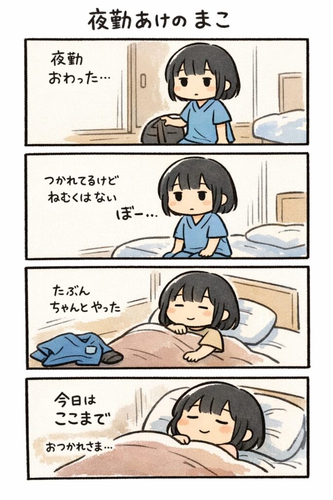 - 夜勤明けは“寝る予定”を最優先で確保する